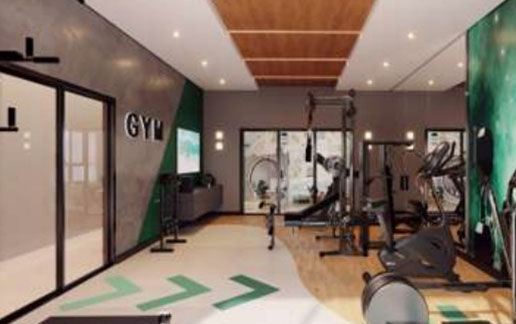 Térreo: salão de festas, coworking, bicicletário, piscina, praça de leitura com pergolado e espaço para minimercado.